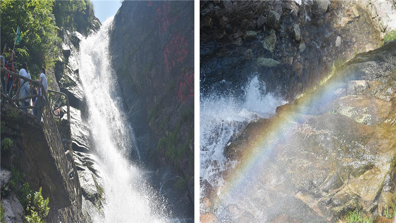 大明山的云海足已称奇,但那里的飞瀑群更是令人叫绝。飞瀑主要分布于玉龙溪和白蛇涧,在大明村汇合。玉龙溪水量充沛,水流湍急,于峭壁丛生的峡谷险境中奔腾北流,不仅山明水秀,绿荫葱葱,而且处处可闻响如壑雷的水涛声。玉龙潭的上游自千亩田北龙门口以下,垂直河床骤然增大,一公里流程落差竟达四百多米,溪水劈开万仞石山,飞流直下,形成四级瀑布,以龙门瀑布最为壮观。